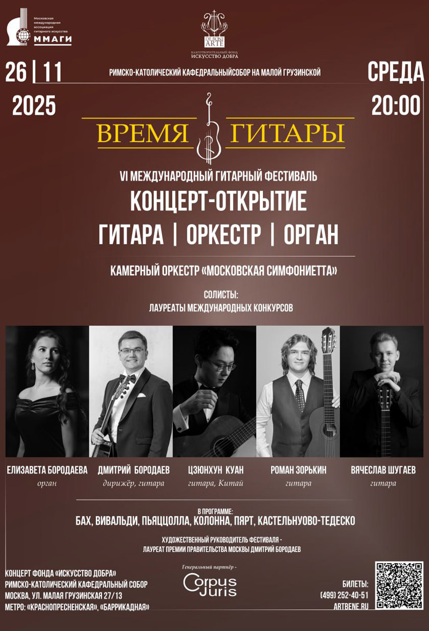 Приглашаем всех любителей музыки посетить  мероприятия фестиваля "Время Гитары 2025" и  получить истинное  наслаждение от исполнения классических произведений гитары с оркестром и органом!